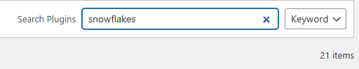Pistikprogrammi paigaldamine ja aktiveerimine. Mul oli eelnevalt plaanis kasutada langevaid lumehelbeid, ja et laadida alla pistikprogramm vastavalt minu ideele, läksin “Add plugins” vahekaardile, kus sisestasin otsingusse “snowflakes”, et leida mõni pistikprogramm oma plaanile.